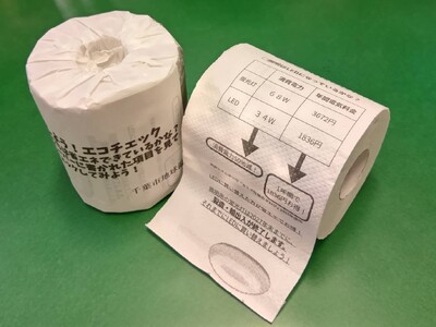 制作したトイレットペーパーには、「実践しよう!エコチェック」をテーマに、包装紙やロール部分に家庭で取り組める省エネ行動を分かりやすく掲載しています。照明のLED化や古い家電の更新など、身近な行動をチェック形式で楽しく学べる工夫が施されています。