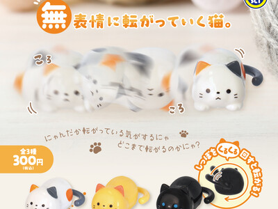 縁日商材をはじめとする玩具等の製造販売を行う株式会社三洋堂(本社:愛知県岩倉市、代表取締役:折小野 嘉輝)は、カプセルトイの新商品『無表情に転がっていく猫。』全3種を、2026年3月下旬より全国のカプセルトイ自動販売機で1回300円(税込)にて順次発売を開始いたします。