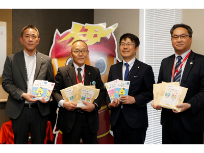2026年3月27日、ETPグループ(愛媛トヨタ/愛媛トヨペット)より関係者4名をお迎えし、今回で5回目となる人気キャラクター「うんこ先生」の小学生向け交通安全ドリルの寄贈式を開催しました。