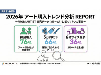 アーティスト支援プラットフォーム「FROM ARTIST」を運営するBUSCA合同会社(本社:茨城県水戸市、代表:戸井田翔馬)は、昨日2026年3月28日時点までの最新の販売データおよびアクセス統計をもとに、アート購入におけるトレンドを分析いたしました。