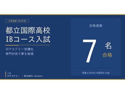 株式会社 Linksenpai(所在地:東京都渋谷区、代表取締役:吉田志織)が運営する国際バカロレア (IB)専門のオンライン家庭教師サービス「IB アカデミー」は、2026 年度の東京都立国際高等学校(以 下、都立国際)国際バカロレアコース(IB コース)入学者選抜において、当塾受講生 7 名の合格を達 成しました。 都立国際の IB コースは募集定員 20 名(4月入学:日本人生徒 15 名・外国人生徒 5 名)という狭き門で、例年 倍率は 4~6 倍に達する東京都内屈指の難関入試です。