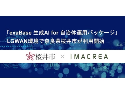 株式会社イマクリエ(本社:東京都港区、代表取締役:鈴木信吾、以下、当社)は、奈良県桜井市において「exaBase 生成AI for 自治体運用パッケージ」(以下、本パッケージ)の提供を開始し、LGWAN環境での運用を正式に開始しました。