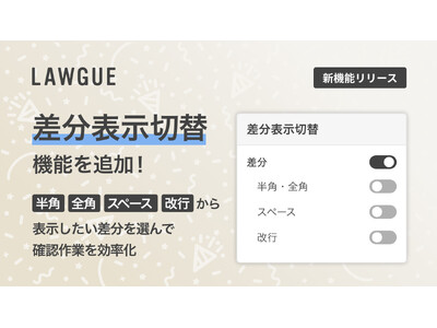 AIを搭載したクラウド ドキュメント ワークスペース「LAWGUE」を提供するFRAIM株式会社(本社:東京都渋谷区、代表取締役社長:宮坂豪)は、「LAWGUE」におけるドキュメントの差分表示において、「半角・全角」「スペース」「改行」の検知を任意で選択できる「差分表示切替」機能を追加いたしました。これにより、文章の内容だけの差分チェックに集中したいといったシーンで、より効率的な確認作業が実現します。