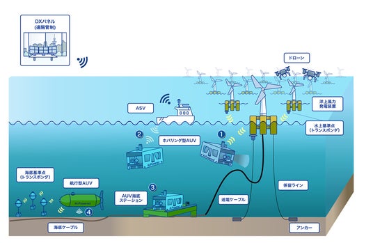 OKIは、東洋エンジニアリング株式会社(代表取締役社長 細井栄治、以下TOYO)、日鉄エンジニアリング株式会社(代表取締役社長 石倭行人、以下NSE)、株式会社FullDepth(代表取締役社長 吉賀智司、以下FullDepth)と共同で、AUV(注1)などを活用した洋上風力発電設備の水中点検作業の無人化に向けた実証試験を実施しました。