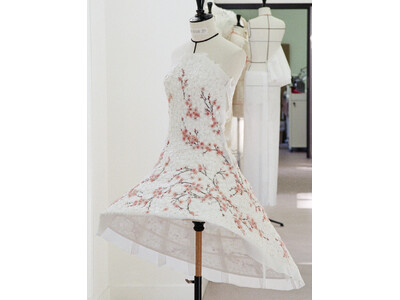 アニャ・テイラー=ジョイは、桜の刺繍が施されたストラップレスのオーガンザドレスを着用しました。