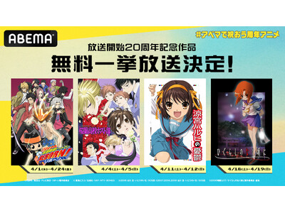 新しい未来のテレビ「ABEMA」は、2026年で20周年を迎える名作アニメを特集する特別企画「~20年変わらない、僕たちの聖域~ #アベマで祝おう周年アニメ」を、2026年4月1日(水)より開催いたします。
