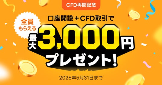 ~CFD取引サービス再開記念「全員もらえる! 口座開設+CFD取引で最大3,000円プレゼント」キャンペーンを実施~