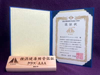 株式会社タウンニュース社(本社:横浜市青葉区、代表取締役:宇山知成、以下 タウンニュース社)は、横浜市が健康経営に取り組む事業所を認定する「横浜健康経営認証2026」制度において、最高ランクである「クラスAAA」の認証を取得いたしました。