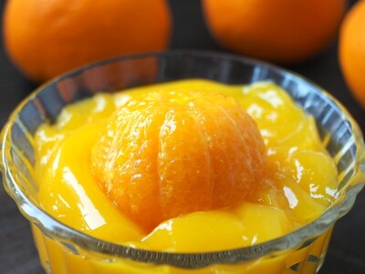 果汁、旨味、香り、それぞれの要素が重なり合い、ひと口で完熟みかんを頬張ったかのような味わいが広がります。濃厚でありながら、後味は軽やか。食後にも楽しめるデザートです。