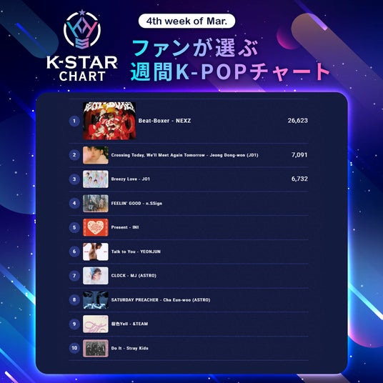 また、同日のチャート投票では、NEXZによる「Beat-Boxer」が1位を獲得し、番組内でも紹介されました。