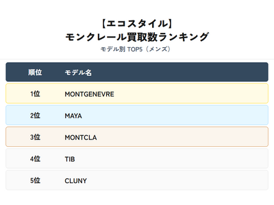 株式会社スタンディングポイント(本社:東京都目黒区、代表取締役:若森 寛)が運営する洋服(古着)・ブランド買取専門店「エコスタイル」は、2025年12月から2026年2月におけるモンクレール(MONCLER)の買取実績をもとに、モデル別ランキングを集計・発表しました。