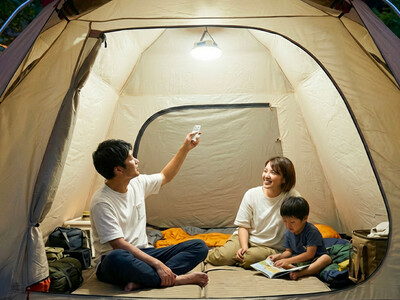 サイト全体を隅々まで明るく照らす1600ルーメンの爆光スペック。さらに、タープの高所に設置した際や、気温が下がる春の夜にシュラフ(寝袋)の中からでも操作が可能な「専用リモコン」を搭載。この利便性は、一度体験すると手放せないキャンプの「新常識」です。