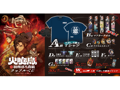 2026年1月から放映開始されたアニメ「火喰鳥 羽州ぼろ鳶組」の公式イラストを使用したオリジナル景品が当たるオンラインくじが販売開始されます。賞品には火消し半纏をイメージしたTシャツなど日常でも使用しやすいアイテムなど、バリエーション豊かなアイテムをご用意しました。
