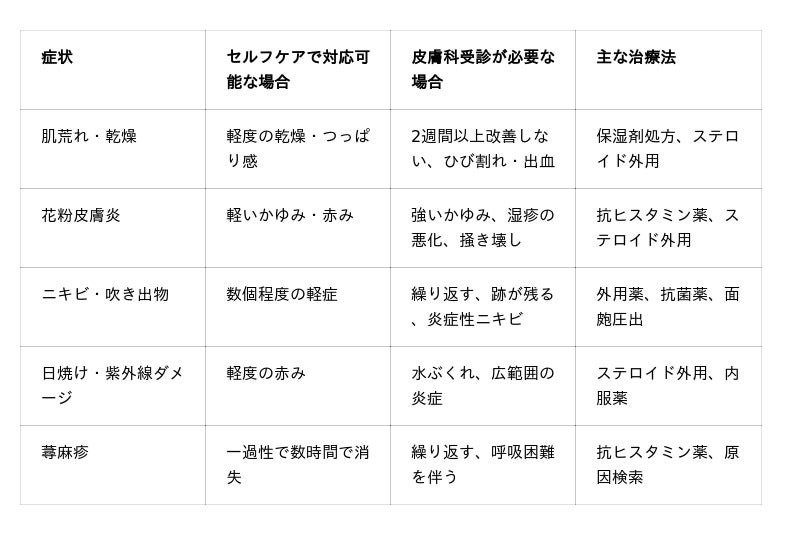 春の肌トラブル別・セルフケアと皮膚科治療の比較