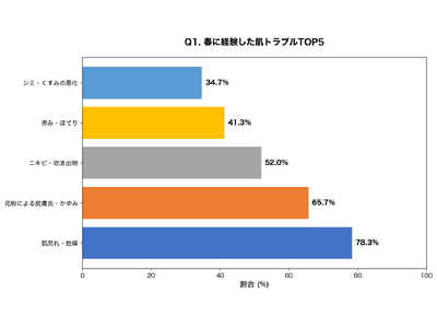 設問:春(3月~5月頃)に経験したことのある肌トラブルをすべて選んでください。(複数回答可、最も多かったもの上位を抽出)