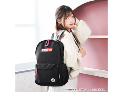 ドットイラストにデザインされた「RANMA」と玄馬(パンダ)をアクセントにした、使い勝手の良いリュック。ファスナーチャームはピンクで統一。