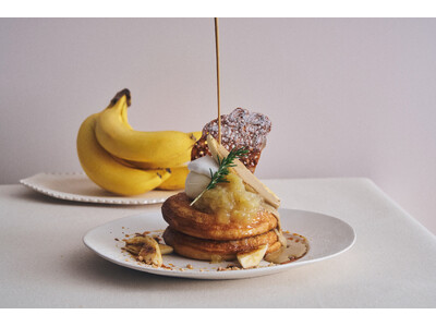 春のやわらかな空気が広がる4月。マンスリーパンケーキとして、香ばしくキャラメリゼしたバナナと濃厚なバナナコンフィチュールを重ねた新作メニューが登場します。