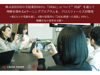 特定非営利活動法人クロスフィールズ(東京都品川区、代表理事:小沼大地、以下クロスフィールズ)は、株式会社IHI(東京都江東区、代表取締役社長:井手博、以下IHI)の全従業員約2万人を対象に、ダイバーシティ・エクイティ&インクルージョン(以下、DE&I)をテーマとする対話型eラーニングプログラムを制作・提供いたしました。本プログラムの受講後アンケートの結果、受講者の約6割が「DE&Iを推進したい」という意識の変化を実感するなど、「DE&Iの自分事化」において高い成果が得られました。(本プログラムを導入いただいたIHI担当者のインタビュー記事は