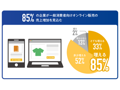 一般消費者向けオンライン販売を行う法人を対象とした調査では、今後EC売上が増加すると考えている企業は85%にのぼりました。「とても増えると思う」(33%)と「多少増えると思う」(52%)を合わせ、多くの企業がEC市場の成長を見込んでいます。この傾向は、企業規模が大きくなるにつれ、強くなっています。