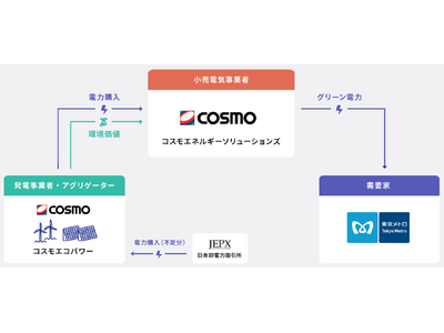 コスモエネルギーホールディングス株式会社(代表取締役社長:山田 茂)のグループ会社であるコスモエコパワー株式会社(本社:東京都品川区、代表取締役社長:野倉 史章、以下「コスモエコパワー」)、および、コスモエネルギーソリューションズ株式会社(本社:東京都中央区、代表取締役社長:河村 靖之、以下「コスモエネルギーソリューションズ」)と東京地下鉄株式会社(本社:東京都台東区、代表取締役社長:小坂 彰洋、以下「東京メトロ」)は、地下鉄初の総合研修センター向けに陸上風力・営農型太陽光電源を併用したオフサイトフィジカルPPA※1(Power Purchase Agreement:電力購入契約、以下「本契約」)を締結しました。