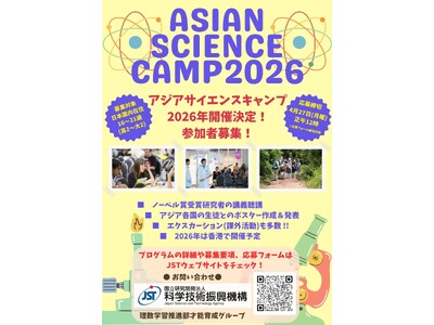 JST(理事長 橋本 和仁)は、2026年8月2日から8月8日に香港で開催される第16回アジアサイエンスキャンプ(ASC2026)への参加者を募集します。募集対象は物理、化学、生物学、数学分野の科学に興味を持つ生徒または学生(高校2年~大学2年相当)です。国内外渡航費や滞在費などの費用は基本的に無料で、参加者負担はありません(パスポート取得費や滞在中の個人的費用等は自己負担)。