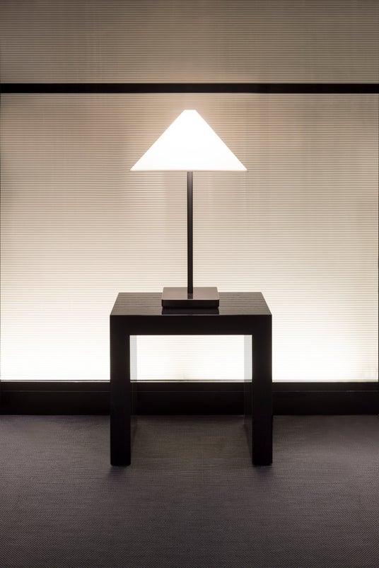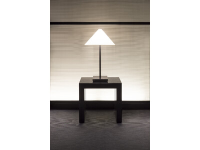 本インスタレーションの核となるのは、1982年にジョルジオ・アルマーニ自らが手がけたテーブルランプ “Logo Lamp(ロゴ ランプ)” です。デザインスケッチに向き合う手元をやわらかく照らすために生まれたこのランプは、光を的確に落としながらも視界を遮らない、独自のフォルムを備えています。そこには、機能性と美しさを両立させるアルマーニの哲学が凝縮され、アルマーニ / カーザの美学を最も純粋に映し出すアイコンとして、今なお愛され続けています。