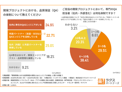 ITエンジニアの派遣・SES事業を展開する株式会社ラクスパートナーズ(東京都新宿区、代表取締役:吉田 雅行)は、ソフトウェア・Web・アプリの開発に携わる経営・事業責任者・部門責任者・プロジェクトマネージャー・エンジニア、およびその採用に携わるエンジニア採用担当者を対象に、「開発現場における品質保証の実態とQAエンジニアの価値」に関する調査を実施しました。本リリースでは一部を抜粋しお知らせいたします。