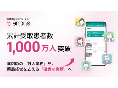 株式会社CARTA HOLDINGSのグループ会社で、リテールDX事業とヘルスケアDX事業を展開する株式会社デジクル(本社:東京都港区、代表取締役CEO:古谷 和幸、代表取締役COO:今井 悠介)が展開する調剤薬局向けDXソリューション「enpas(エンパス)」は、一人ひとりに最適化された健康サポート情報(※1)を受け取った患者数が、累計1,000万人(※2)を突破したことをお知らせいたします。