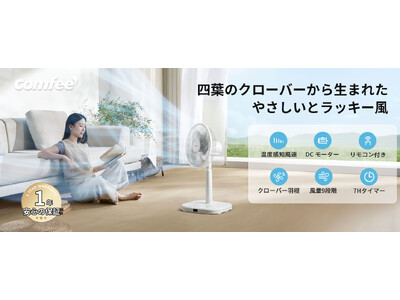 家電ブランドComfeeは、四つ葉クローバーデザインを採用したリビング向け新型ファン「DCモータークローバー羽扇風機」を発売します。本体価格は