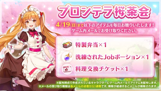 桜の下で羽を休めるのにぴったりなアイテムを毎日お届け。期間中、ゲーム内メールにて「特製弁当」や「洗練されたJobポーション」、「料理交換チケット」といった