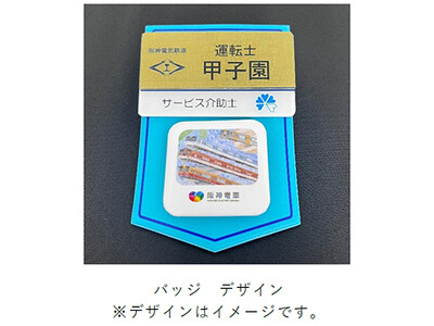 2025年 絵画コンクール「ぼくとわたしの阪神電車」の大賞作品がデザインされたバッジを、4月1日(水)から阪神電車の運輸部員(乗務員及び駅係員など)が名札下に着用します。