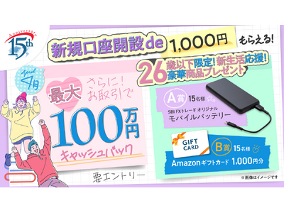 SBIホールディングス株式会社(本社:東京都港区、代表取締役会長兼社長:北尾 吉孝)の連結子会社で、個人投資家向けに外国為替取引サービスを提供するSBI FXトレード株式会社(本社:東京都港区、代表取締役社長:藤田 行生、以下「当社」)は、「2026年4月 春の新生活応援!新規口座開設キャンペーン」を実施いたしますので、お知らせいたします。