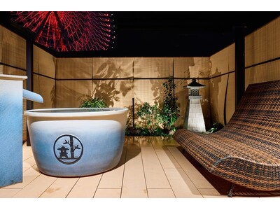屋上風呂に置かれた高灯籠が、デザインコンセプトを表現しております。