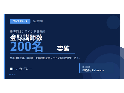 株式会社Linksenpai(所在地:東京都渋谷区、代表取締役:吉田志織)が運営するIB(国際バカロレア)専門 オンライン家庭教師サービス「IBアカデミー」は、2026年3月、登録講師数が200名を突破したことをお知ら せします。 日本国内のIB認定校・候補校数は2025年12月時点で260校(文部科学省IB教育推進コンソーシアム調べ)に 達し、IB生の数は年々増加しています。一方で、IBの高度な学習要求に応えられる専門家庭教師は慢性的に不 足しており、IBアカデミーはこの課題に応えるべく講師ネットワークの拡充を続けてきました。