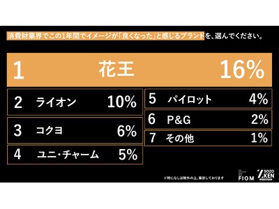 1位『花王』(イメージが良くなった:16% / 最も爆上がりした:10%)