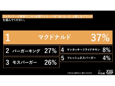 Z世代向けクリエイティブカンパニーFiom合同会社(本社:東京都渋谷区、代表社員:竹下洋平)が運営する、Z世代当事者が実態や価値観を分析するシンクタンク「Z-SOZOKEN(Z世代創造性研究所)」 は、全国のZ世代(18歳~24歳)の300名を対象に実施した、食品、コスメ、アパレル、エンタメなど全19部門にわたる「Z世代のイメージが爆上がりしたブランドランキング」 の最新調査レポートより、ファストフード部門の動向を深く考察した第十二弾インサイトサマリーを独自に公開いたしました。