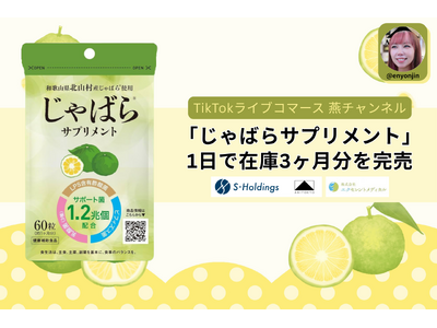 ライブコマース事業、ブランド事業、AI事業などを展開し、日常と未来を彩る最高の体験を創造する株式会社Sホールディングス(本社:東京都品川区、代表取締役CEO: 燕 咏靖)は、当社運営のアパレルブランドABITOKYOが企画・配信するTikTokライブコマース「燕チャンネル」において、2026年3月5日(木)に実施した配信で、株式会社エクセレントメディカル(本社:福井県福井市、代表取締役:服部 直樹)のサプリメント「じゃばらサプリメント」の販売を行いました。今回の配信では、メーカー様が約3ヶ月分として保有していた在庫約2,500個を、配信当日中にすべて販売する結果となりました。
