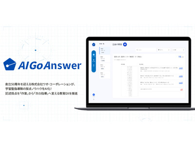 株式会社ワオ・コーポレーション(本社:大阪府大阪市、代表取締役社長:池森英雄)と、その子会社である株式会社ワオテック(本社:大阪府大阪市、CEO:池森英雄)はこのたび、国語記述問題AI自動採点システム「AI Go Answer(エーアイゴーアンサー)」を共同開発しました。