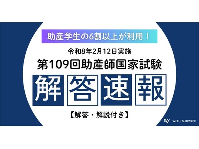 株式会社With Midwife(本社:大阪市、以下With Midwife)は、第109回助産師国家試験(2026年2月12日実施)において公開した解答速報について、厚生労働省の正式解答と照合した結果、正答率97.2%であったことをお知らせいたします。当社は2023年より解答速報を継続して公開しており、本年で4年目となります。