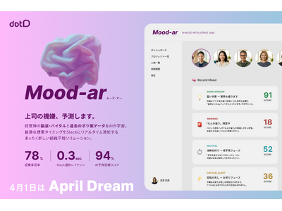 事業創造ファームの株式会社dotD(本社:東京都港区、代表取締役:小野田久視、以下dotD)は、経営陣の感情状態をAIがリアルタイムで解析・通知するSaaS型サービス『Mood-ar(ムード・アー)』を本日より正式リリースしたことをお知らせいたします。
