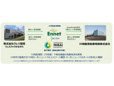 株式会社エネット(本社:東京都港区、代表取締役社長 谷口 裕昭、以下「エネット」)、川崎未来エナジー株式会社(本社:川崎市幸区、代表取締役社長:井田 淳)、川崎臨海倉庫埠頭株式会社(本社:川崎市川崎区、代表取締役会長:高橋 哲也、以下「川崎臨港倉庫埠頭」)、株式会社クレハ環境(本社:福島県いわき市、代表取締役社長:並川 昌弘、以下「クレハ環境」)は、川崎市が推進するCNKおよびCNPに関連する取組みとして、川崎臨海部(川崎港)における実質再エネ電力の導入と環境価値の地産地消を実現しました。