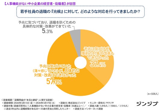 一方で中小企業の経営者やマネージャーの57.3%が「退職の予兆に気づきながら、具体的な対策・改善ができなかった」と回答しました。