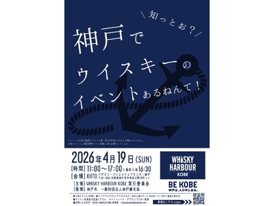 2026年4月19日(日)神戸市中央区のデザイン・クリエイティブ・センター神戸(通称:KIITO)で "WHISKY HARBOUR KOBE" を開催します。入場チケットは、運営協力店舗とデジタルチケットシステム「CLOUD PASS(クラウドパス)」で販売中です。