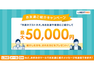 株式会社外為どっとコム(本社:東京都港区、代表取締役社長:竹内 淳)は、店頭FX『外貨ネクストネオ』にて、「お友達ご紹介キャンペーン」を2026年4月1日(水)より実施します。