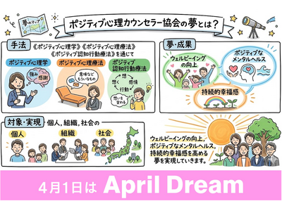 当社は、4月1日を夢を発信する日にしようとするApril Dreamに賛同しています。このプレスリリースは「一般社団法人ポジティブ心理カウンセラー協会」の夢です。