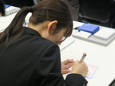 ■2026年度総合職採用の入社式の概要本年度は式典に加え、グループが大切にしている社訓の一つである「親を大切にすること」を体感する機会として、家族やお世話になった方への感謝の気持ちをオリジナルのポストカードに記して発送しました。昨年度の入社式から始まったこの企画は、本年度の新入社員からも