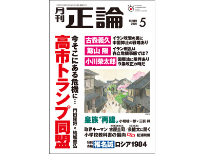 日本の針路を問う論壇誌、月刊「正論」5月号(産経新聞社発行)を4月1日に発売しました。最大の見どころは、衆院選での「高市勝利」を経て、激変する国際情勢に日本がいかに対峙すべきかを探る徹底議論です。門田隆将氏と結城豊弘氏は、強固な日米関係を軸とした「高市・トランプ同盟」による中国封じ込めを提言。外交・安全保障面では、古森義久氏や飯山陽氏が、イラン情勢の緊迫が日本に及ぼす「存立危機事態」のリアルを詳述しています。また、特別寄稿として作家・椎名誠氏による極地体験記を掲載しています。さらに、憲法改正を巡る小川榮太郎氏の提言や、古屋圭司・衆院憲法審査会長へのインタビュー、再起をかける泉健太氏の独白など、政界の深層に迫る論考が揃っています。
