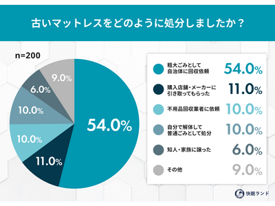ムーンムーン株式会社は、マットレスを買い替えた経験がある全国の男女200名を対象に「マットレスの処分と買い替えに関する調査」を実施しました。 調査の結果、