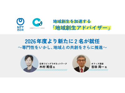 NTT西日本株式会社(代表取締役社長:北村亮太、以下、NTT西日本)と 株式会社地域創生Coデザイン研究所(代表取締役所長:木上秀則、以下、地域創生Coデザイン研究所)は、2026年4月1日付で、新たに2名の専門家を地域創生アドバイザーとして迎えることをお知らせします。