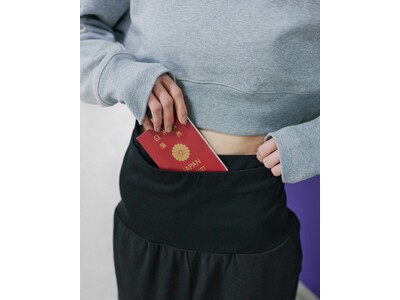やわらかなスウェット素材と締め付け感の少ないウエスト仕様により、移動中もストレスフリーな着心地を実現しました。